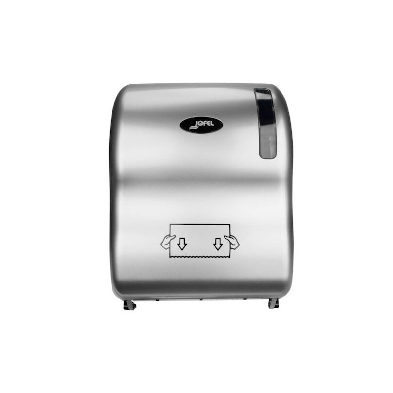 Dispensador de Toalla. Base negra, Tapa color silver y visor para observar consumo de papel.